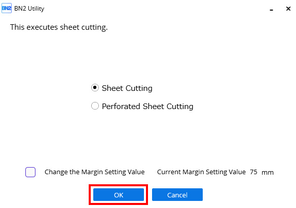 Selecione o método de corte da folha e, em seguida, clique em OK.