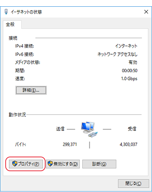イーサネットのプロパティまたはWi-Fiのプロパティ画面が表示されます。