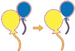 Innenraum nicht schneiden: Selbst wenn auf der Innenseite des ausgewählten Bildes Umrisse vorhanden sind (wie in der Abbildung unten links) oder Sie mehrere Bilder ausgewählt haben und Umrisse auf der Innenseite benachbarter Bilder erstellt werden können (wie in der Abbildung unten rechts), wird auf der Innenseite keine Schnittlinie erzeugt.