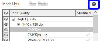- Wählen Sie die Druckqualitätsmodi, die für das ausgewählte Medium verwendet werden sollen, in der Modusliste aus.