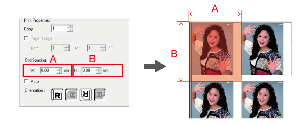 - Rasterabstand: Geben Sie den Wert an, der die Addition der „Bildgröße“ und des „Abstandes zwischen benachbarten Bildern“ darstellt. Die Werte für Breite und Höhe können separat angegeben werden.