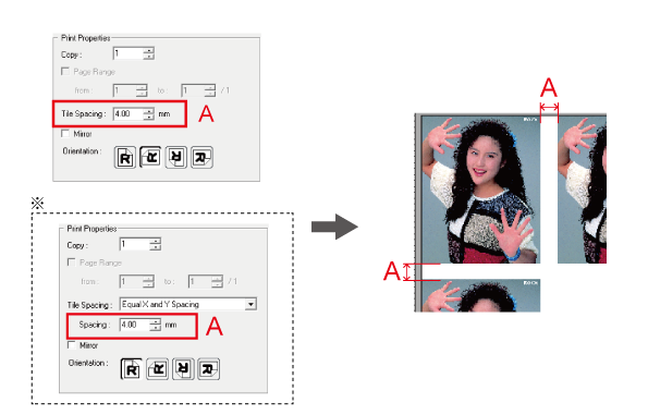. - Wählen Sie über Kachelabstand aus, wie der Abstand zwischen benachbarten Bildern festgelegt werden soll. WICHTIG Welche Optionen ausgewählt werden können, hängt vom Drucker ab.