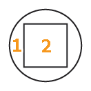 - Ziehen Sie Kreis (1) ab. Achten Sie darauf, dass nur Kreis abgetrennt wird und sich dieser gut ablösen lässt. Wenn sich auch das Rechteck ablöst, erhöhen Sie den Klingenkraft. Wenn einige Bereiche nicht geschnitten werden, reduzieren Sie die Schnittgeschwindigkeit.