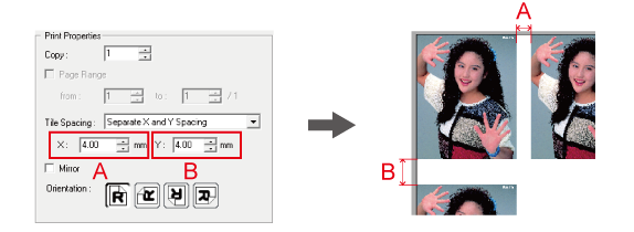 - Espaçamento X e Y diferentes: Especifique o espaçamento entre imagens adjacentes. Diferentes valores são especificados para os espaçamentos vertical e horizontal.